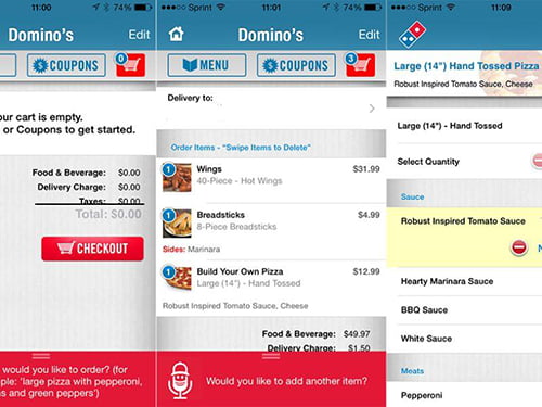 Nog een leuk voorbeeld: bij Domino’s Pizza is het al mogelijk om via voice search een pizza te bestellen.