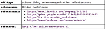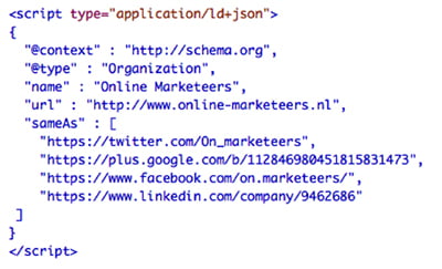 Hieronder een voorbeeld van sematische markup op de website van de Online Marketeers: