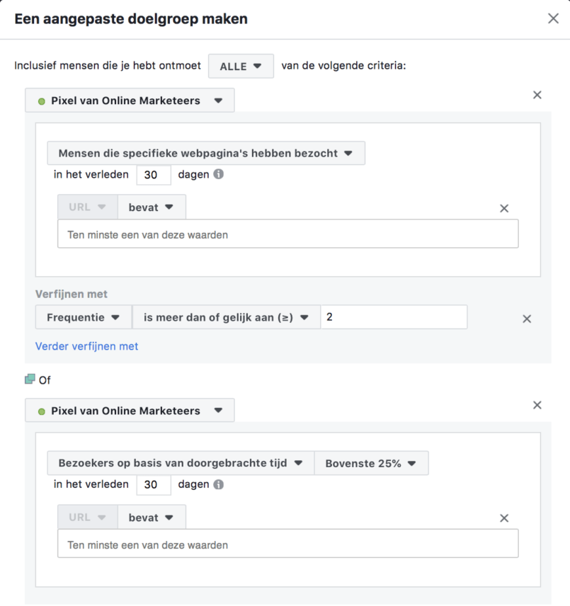 Zorg voor een nog specifieker doelgroep! Richt je bijvoorbeeld op de personen die eerder interesse hebben getoond. Dankzij de Facebook pixel kun je mensen targeten die vaker op je website zijn geweest, zelfs op specifieke landingspagina’s. Wil je bijvoorbeeld een bepaalde dienst of product verkopen waar jij eerder over geblogd hebt? Target dan de personen die de blog gelezen hebben!