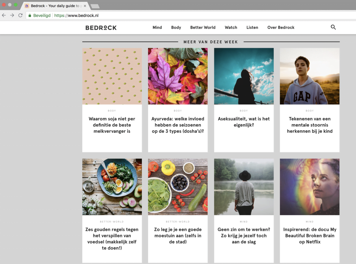 2. Zoek een foto die aansluit op je merk, concept en identiteit. Bedrock.nl is een goed voorbeeld: zij gebruiken over het algemeen veel stockfoto’s, maar het komt helemaal tot zijn recht.