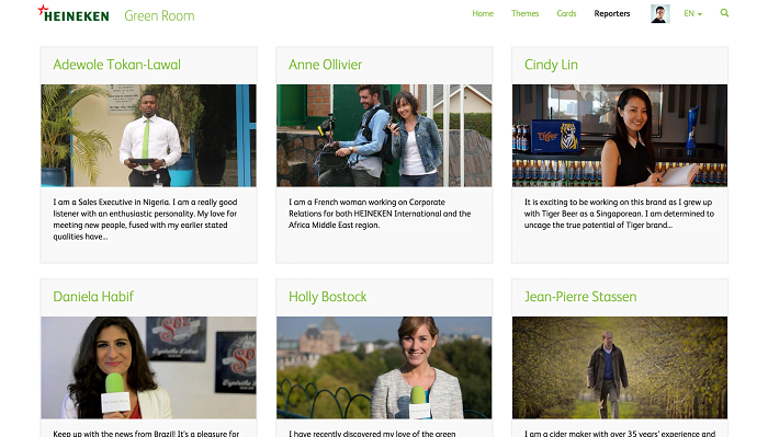 Hoe je niet alleen verhalen vertelt naar de buitenwereld, maar ook intern je medewerkers tot brand ambassadors maakt, dat liet Heineken mooi zien. Zij richtten een Green Room in, een online wereldwijd storytelling platform voor de bijna 100.000 medewerkers. Zij werden uitgenodigd om op video te vertellen hoe de strategie van Heineken ze inspireerden om tot hun eigen plannen en acties te komen. Deze verhalen en video’s werden vervolgens ook met de buitenwereld gedeeld. Het werd een mooi combinatie van interne en externe communicatie. En zo sneed het mes aan twee kanten!