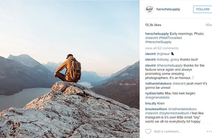 Het immens populaire hipster rugzakkenmerk Herschel neemt ons mee op reis. Op spannende hiketochten, door de mooiste bergketens en langs betoverende meren. Nog vóór we de rugzak gekocht hebben, zijn we eigenlijk al een beleving rijker. Met ons volle bewustzijn vallen we voor het aanlokkelijke verhaal, en willen we er maar wat graag onderdeel van uitmaken. We kopen niet zomaar een tas, maar een ervaring! Hoe werkt dat?