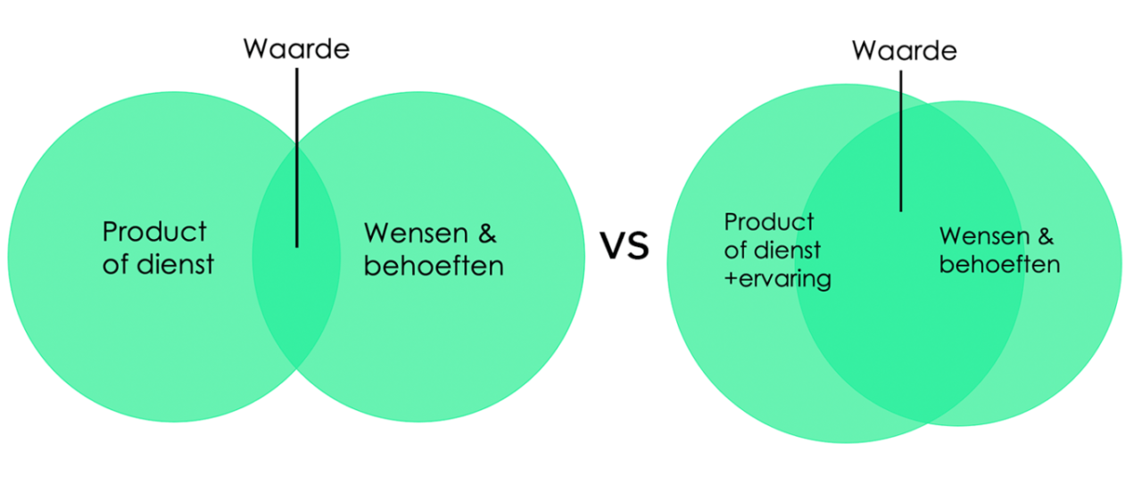 Bij het handelen in producten of diensten is het de bedoeling dat een doelgroep met een specifiek probleem wordt geholpen met een oplossing voor dat specifieke probleem. Wanneer de organisatie de ervaring van de klant centraal zet, dan vindt er méér waardeoverdracht plaats dan alleen de uitwisseling van deze oplossing.