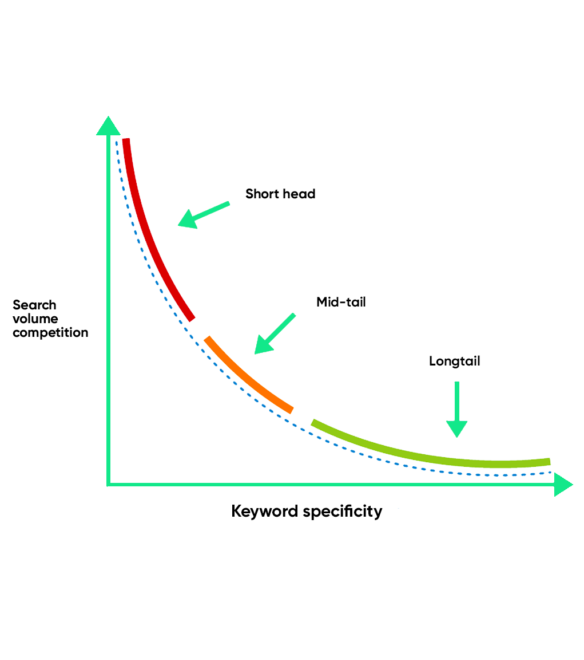 Met long tail zoektermen zijn gebruikers vaak op zoek naar antwoorden op hele specifieke vragen die je bijvoorbeeld met een blogpost heel gericht kunt beantwoorden. Je kunt je voorstellen dat het optimaliseren voor ‘SEO teksten schrijven’ specifieker is dan het zoekwoord ‘SEO tips’. Hierdoor ben je dus ook relevant voor de bezoekers en creëer je kwalitatief verkeer naar je website.