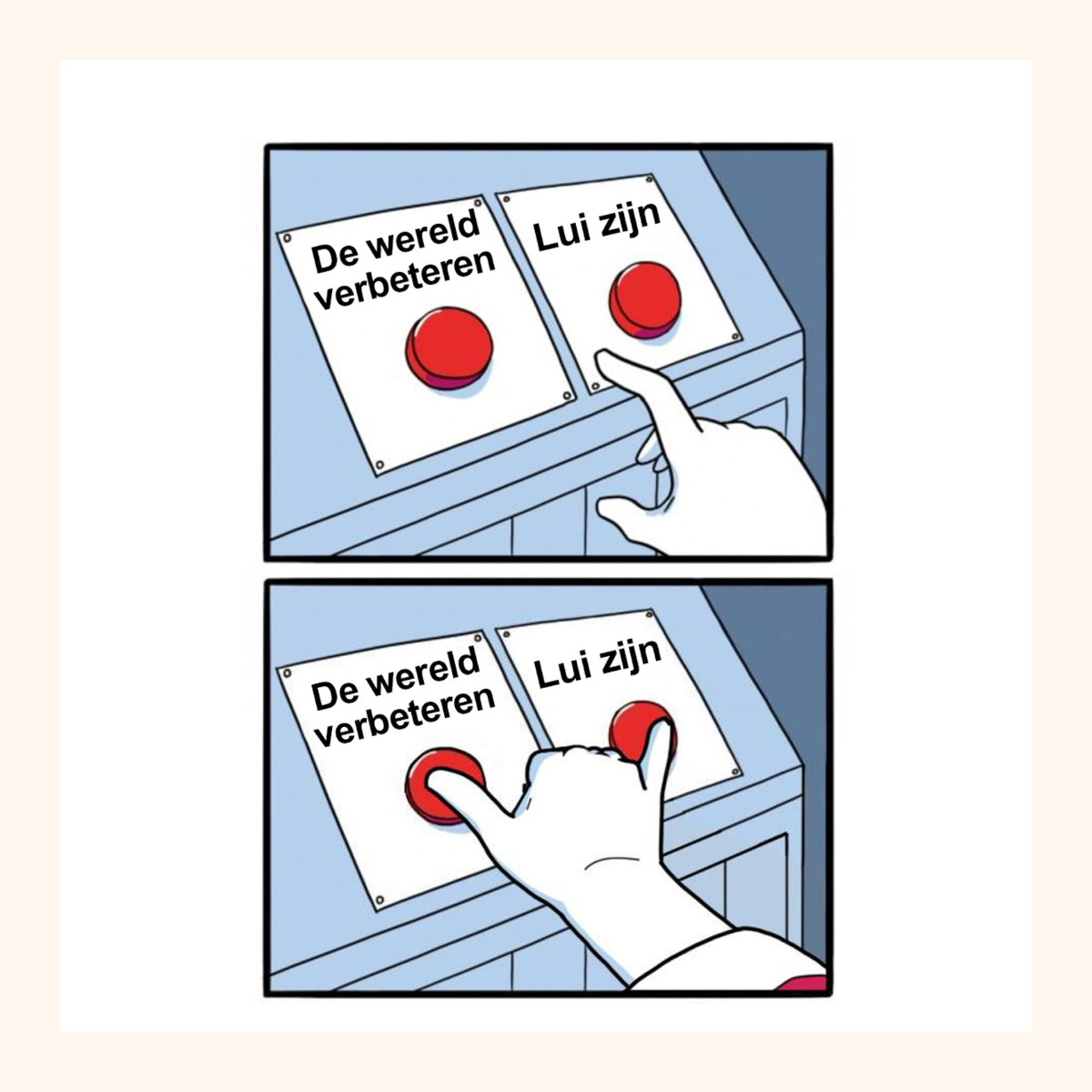 See: We maken kennis met een aantal luie wereldverbeteraars. We maken duidelijk dat ook wereldverbeteraars met de kleinste handelingen een groot verschil kunnen maken.